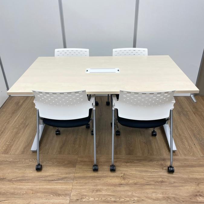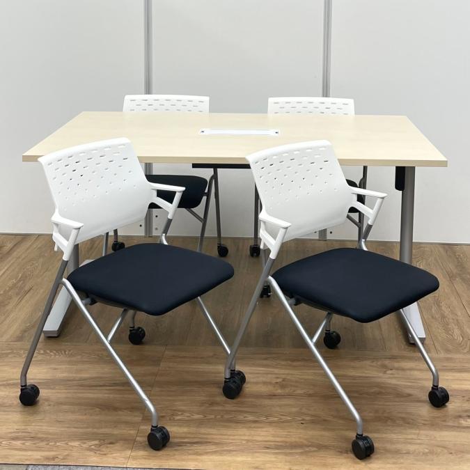 【テーブル、チェアセット!!】コクヨ製 ビエナシリーズ ナチュラルカラー ミーティングテーブル、ピエガシリーズ ブラックカラー スタッキングチェア!!- 京都東寺店