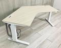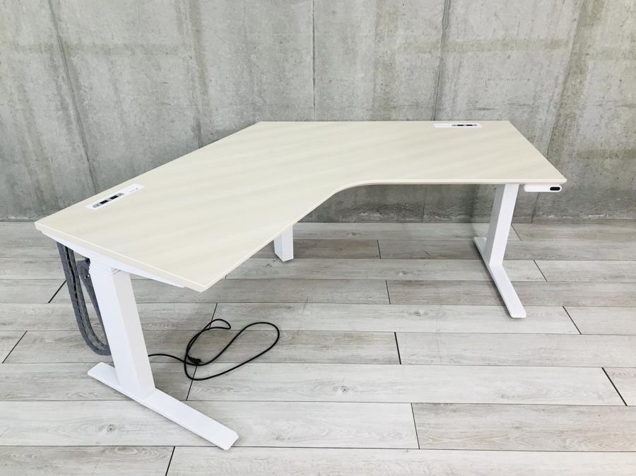 【在庫入替セール】【T12】オカムラ製・『スイフト』昇降デスク 120°タイプ(ブーメランデスク)入荷いたしました!好み高さに電動で調節でき、人目を気にせず作業に集中しながら健康的なオフィスワークを!!優しい印象のナチュラルカラーで新学期・移転・ご自宅・オフィス・学校にオススメです!!弊社使用欄【A00897309】- 在庫数