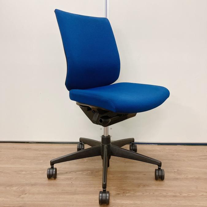 コクヨ ウィザード2 ローバック ロングセラーシリーズ プルシアンブルー×ブラックフレーム 肘無しモデル 定番の使いやすいチェア