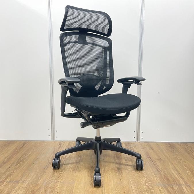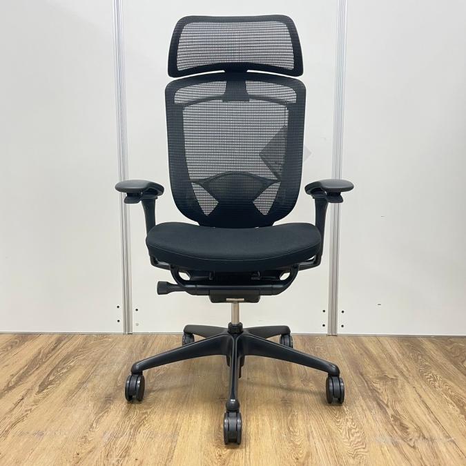 【レア】【2019年度製】オカムラ製 コンテッサセコンダシリーズ 背面メッシュ 座面クッション 可動肘 ヘッドレスト付きが嬉しいオカムラの最高峰モデル! 肘付きハイバックチェア!!※京都東寺店撮影現物画像※- 京都東寺店