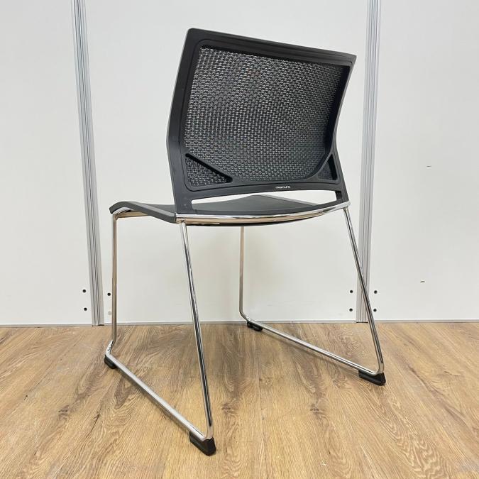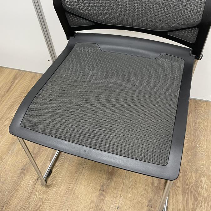 オカムラ製 ツァルトシリーズ ブラックカラー 座面・背面メッシュ仕様 通気性の良いメッシュ張 スタッキングチェア!!※京都東寺店撮影画像※- 京都東寺店