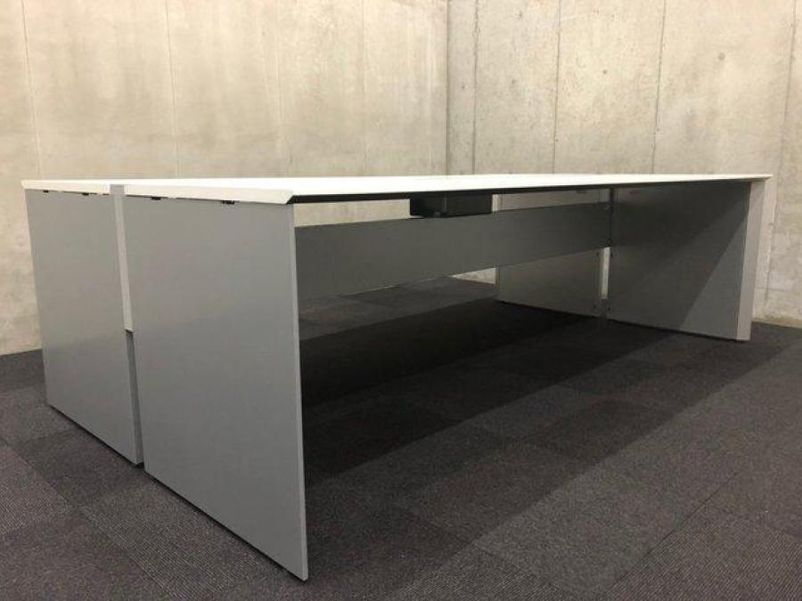 ★白×銀のカラーリングが人気の秘訣!デザイン性に優れたワークデスク入荷!W2400【倉庫在庫品】