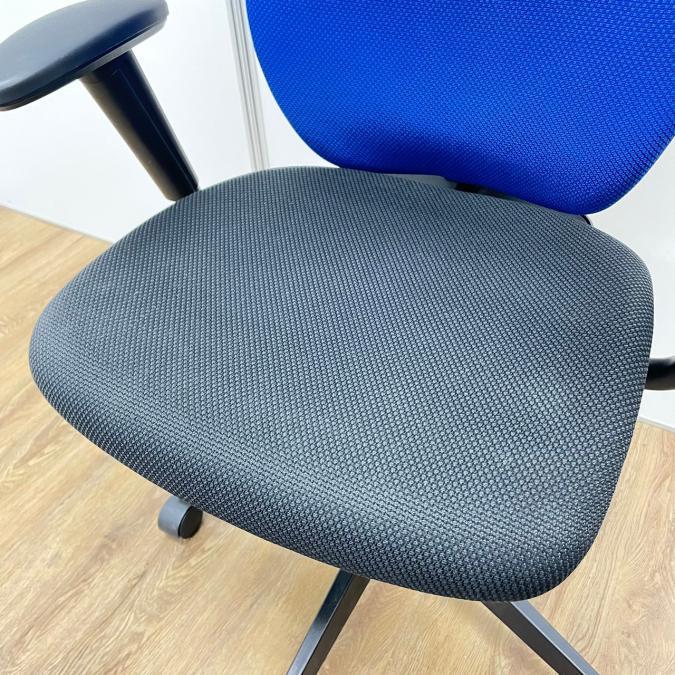 【一人ひとりにマッチする座り心地!ミドルクラスの定番チェア!】■イトーキ(ITOKI)製 プラオ(PRAO)チェア 肘付ハイバック ■ストロングブルー×ブラックシェル ■可動肘(ソフトパッド) ■ランバーサポート付き