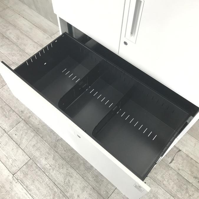 【収納量抜群の書庫セット!観音開き+引き出しタイプの人気の組み合わせ!】■コクヨ(KOKUYO)製 エディアシリーズ(EDIA) 両開き+3段ラテラル 書庫セット ハイキャビネット ■シリンダー錠 ■ホワイト
