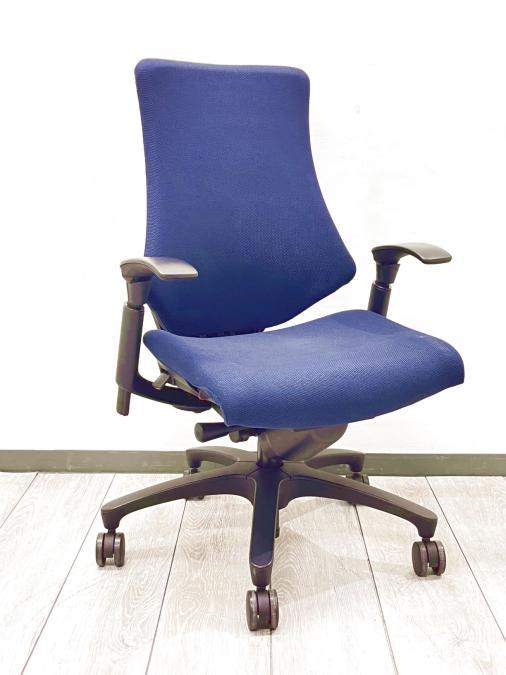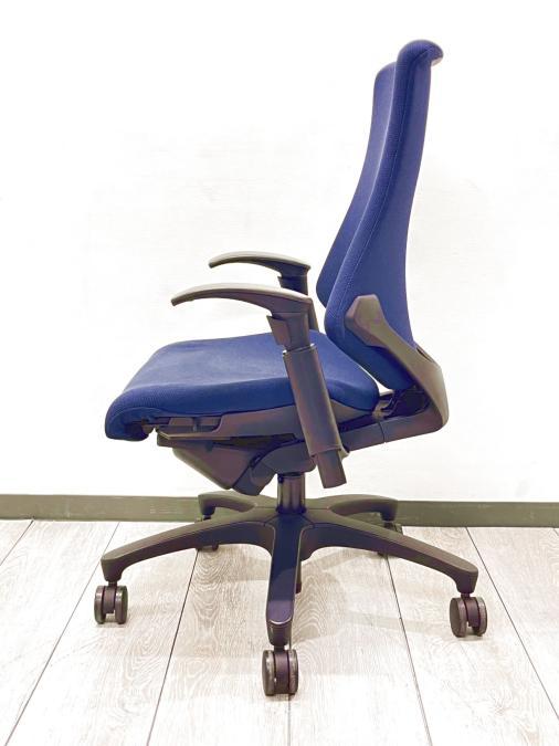 【包み込まれるフィット感!】 ■イトーキ製 エフチェア 肘付 ネイビーブルー ■デスクワークの疲労を軽減!