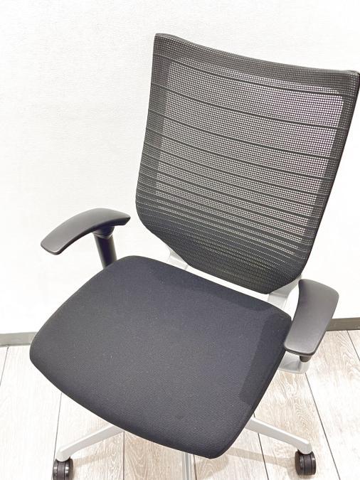 もちろん座り心地もコンテッサの直系ですから快適です。座面の素材はクッションとメッシュの2タイプあります。私、個人的には座面の中心部分でも外側でもテンションが変わらないクッション素材が、足を閉じても開いても快適なので推しです!"
