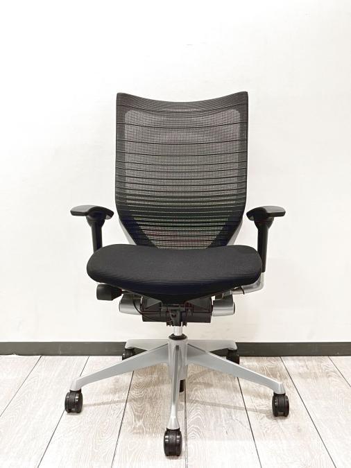 【長時間の着座でも疲れにくい!ベストなポジションが得られる先進設計!】■オカムラ バロンチェア 肘付 ブラック ハイバック シルバーフレーム ■良い椅子は腰を守る投資です!【Okamura Baron】