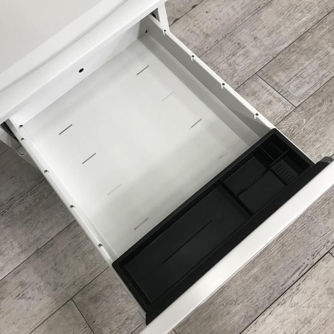 - 一部不具合ありその脇机・ワゴンの本来の効用を果たすための機能以外の一部が使用不可な状態。(例、引出が開閉しづらい、 キャスターロック機能使用不可、ラッチ不良 等がある。)