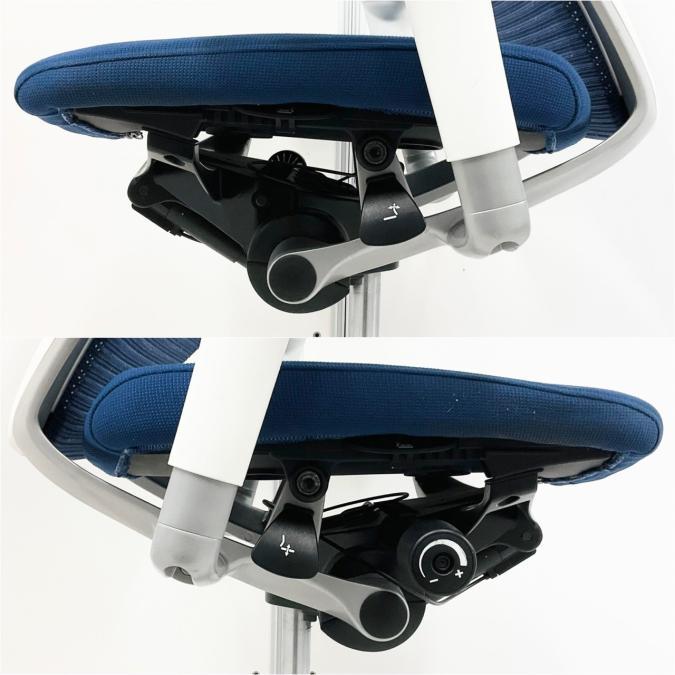 もちろん座り心地もコンテッサの直系ですから快適です。座面の素材はクッションとメッシュの2タイプあります。私、個人的には座面の中心部分でも外側でもテンションが変わらないクッション素材が、足を閉じても開いても快適なので推しです!"