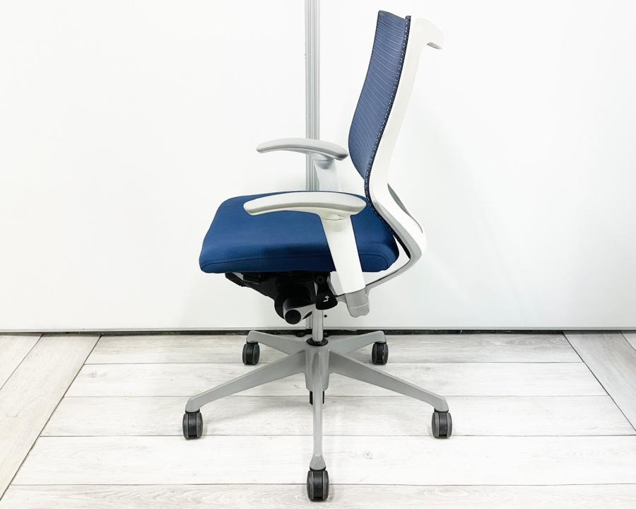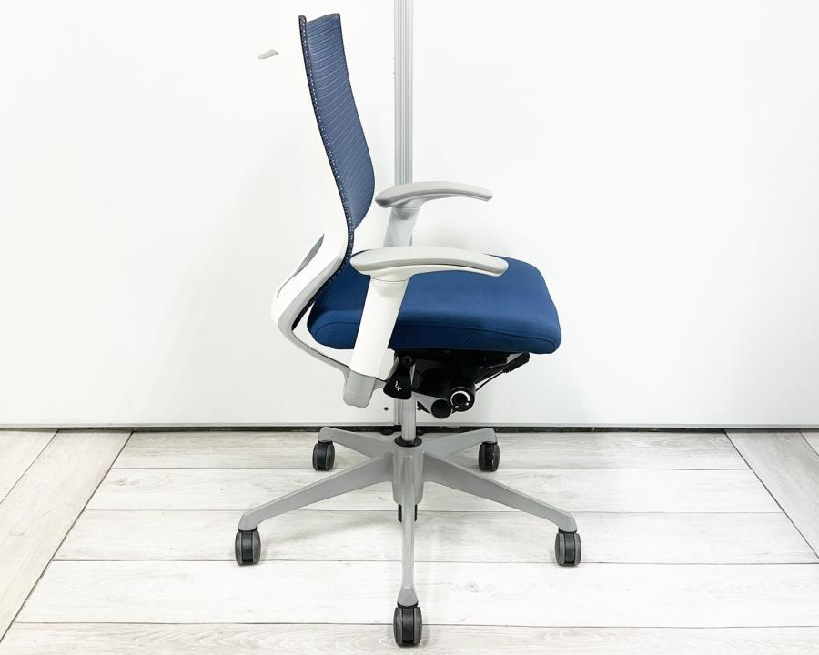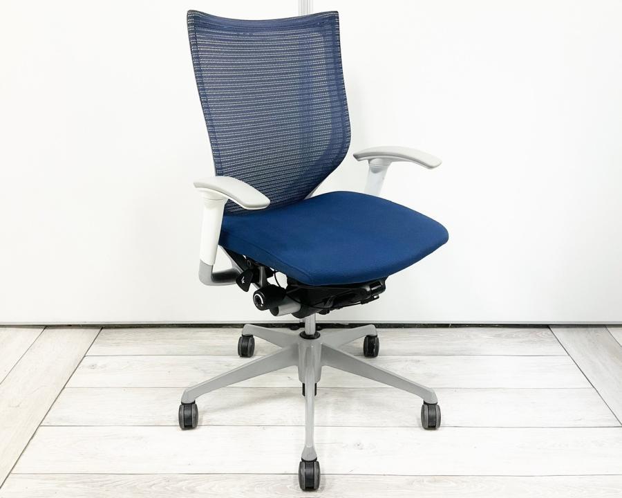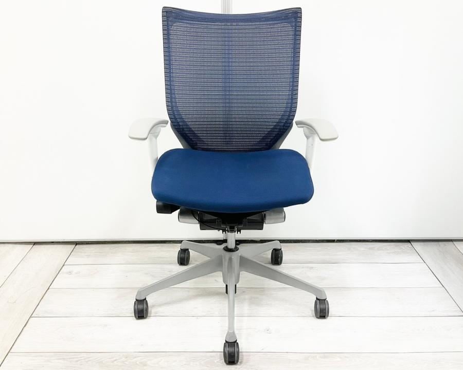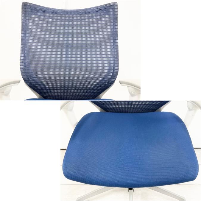 【座面が大人気!国産メッシュチェアの代表格!】■オカムラ(okamura)製 バロン(Baron)チェア ローバック 肘付き ■背面メッシュ ■固定肘 ■色:ダークブルー ■ハンガー付き