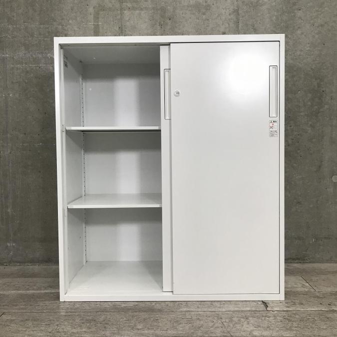 【在庫入替セール】2枚引き戸書庫 コクヨ エディア 鍵付き(シリンダー錠) 天板付き 清潔感のあるホワイト ※レール・ベースに日焼けあり【愛知・名古屋・豊田・静岡・浜松】