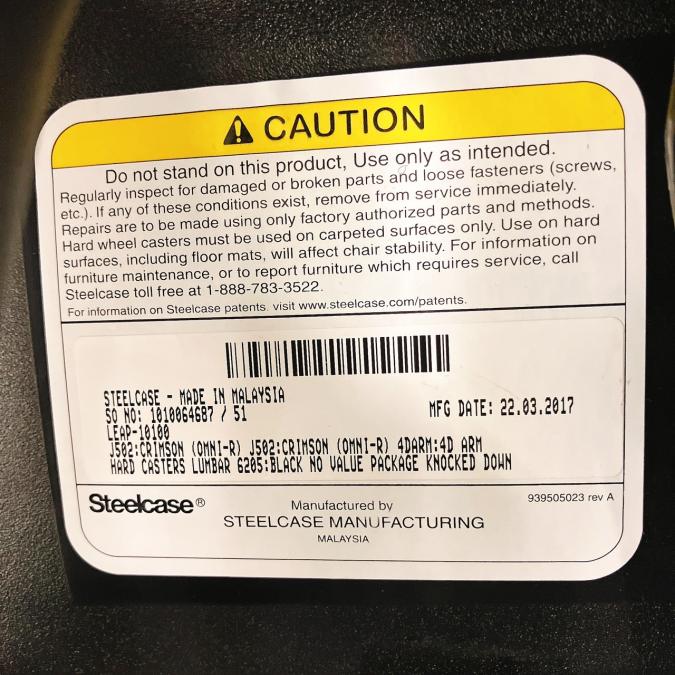OAチェア 肘付 スチールケース リープ レイアウト レッド 買い増し 個人様サーキュラーバリューCO2削減量の算出について