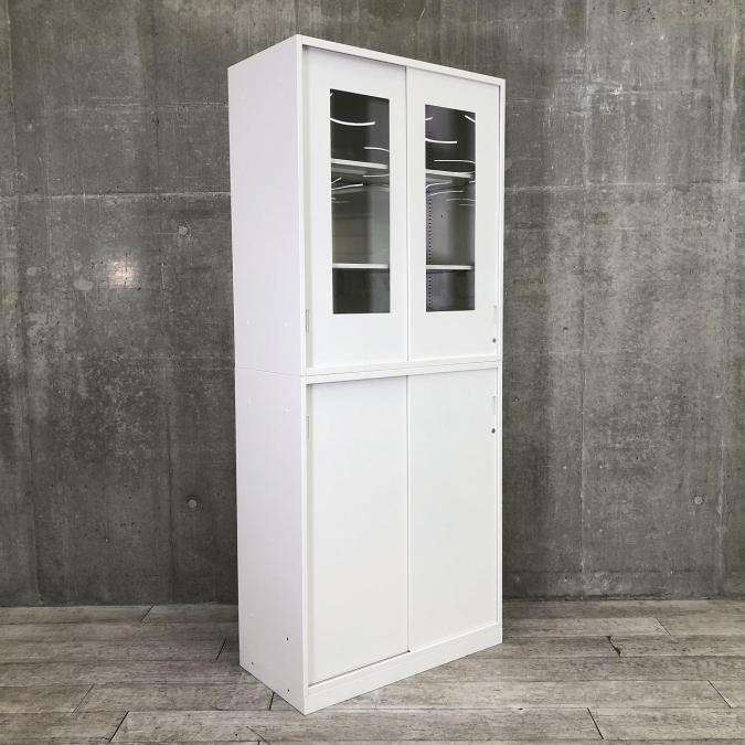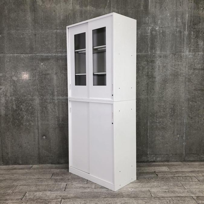 【レア入荷!】【ガラス引き違い+引き違いの上下セット商品】■イトーキ(ITOKI)製 eS(エス)シリーズ ガラス引き違い+引き違い 書庫セット ■ホワイト【搬入時は上下別の2個口での納品となるためエレベーター搬入も安心!】【弊社管理番号:A00931309】- 在庫数