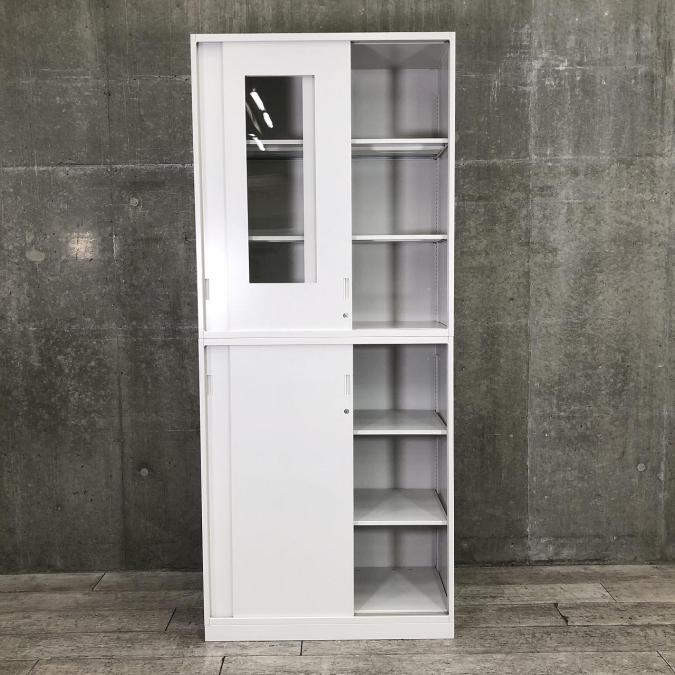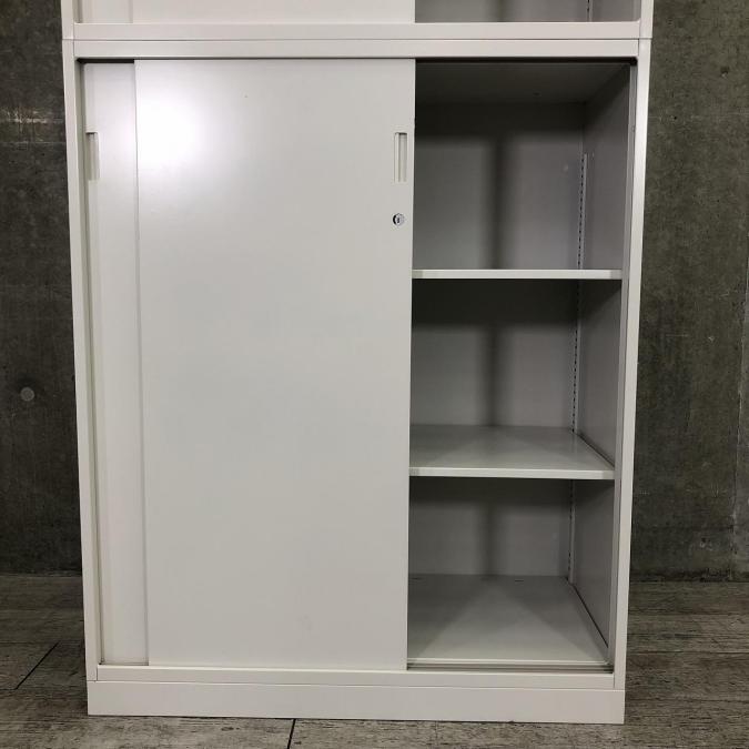 【人気のガラスタイプ入荷!】■イトーキ製 上下引戸書庫セット 上置きガラス戸+下置きスチール戸 ■スライド扉でスペースを有効活用! A00931309- 川崎店