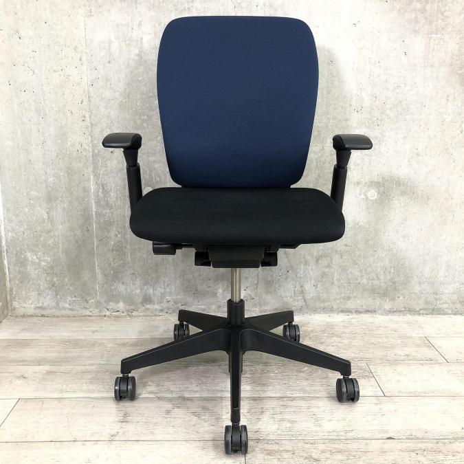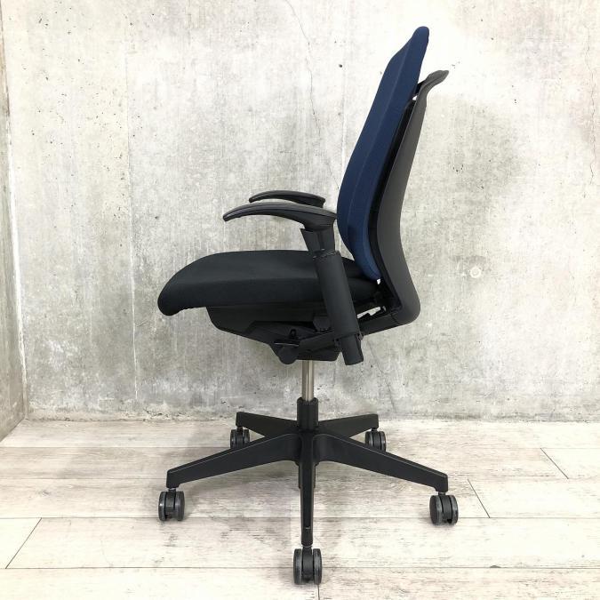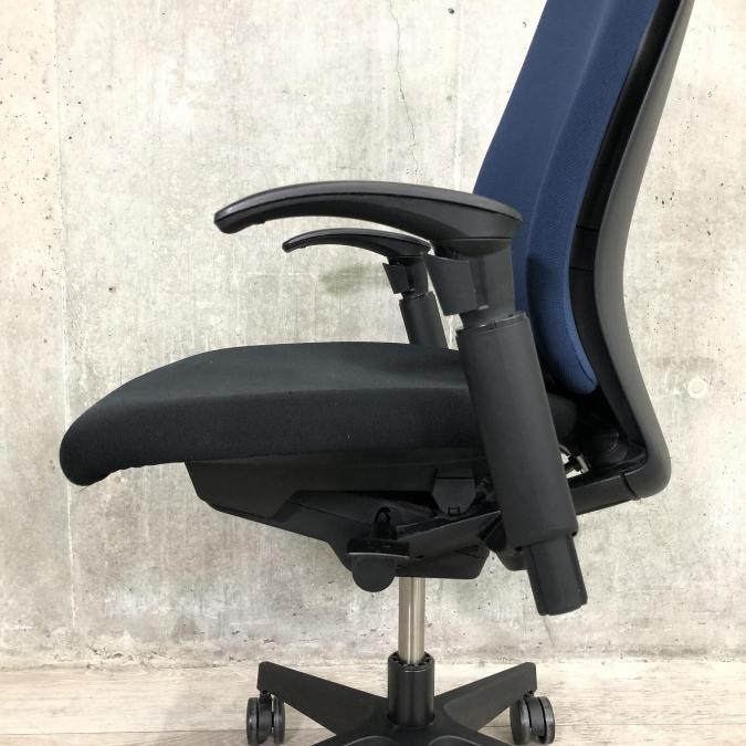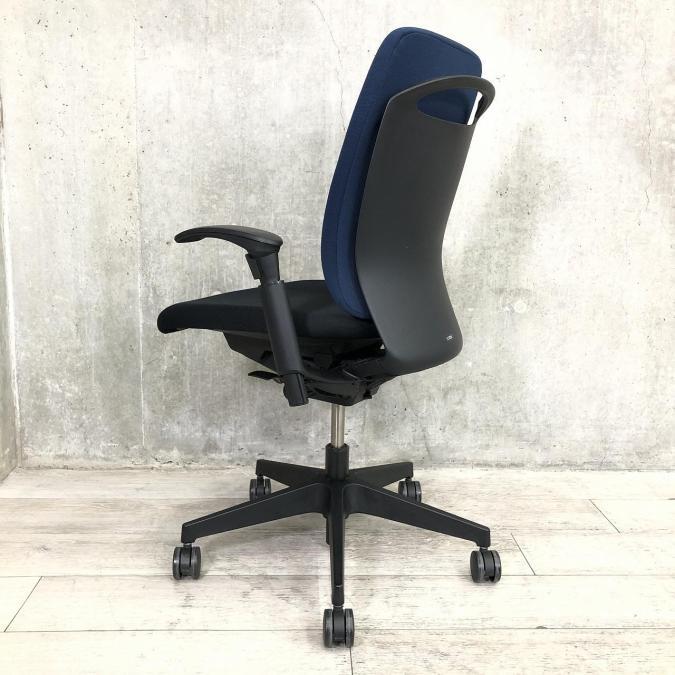 【姿勢の変化にフレキシブルに対応!】■イトーキ製 フルゴチェア 肘付 ■スタイリッシュなツートンカラー 背:ネイビーブルー&座:ブラック- 川崎店