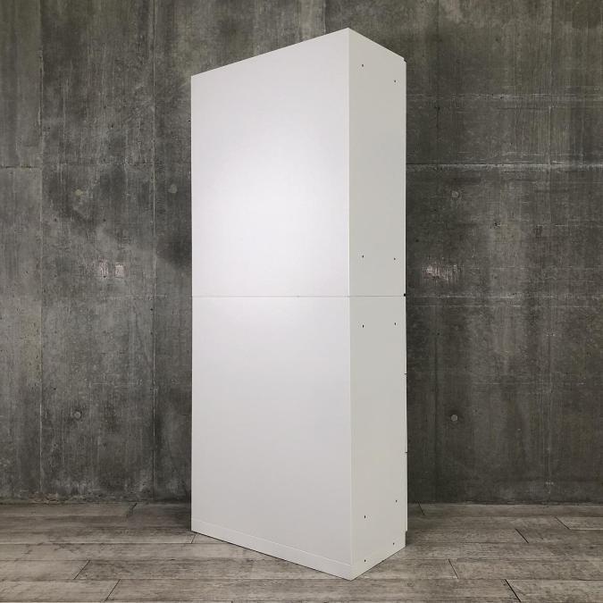 両開き扉は180°開閉できるため扉が途中で止まることが無く、狭い通路でも扉を気にせずに物の出し入れが出来ます。