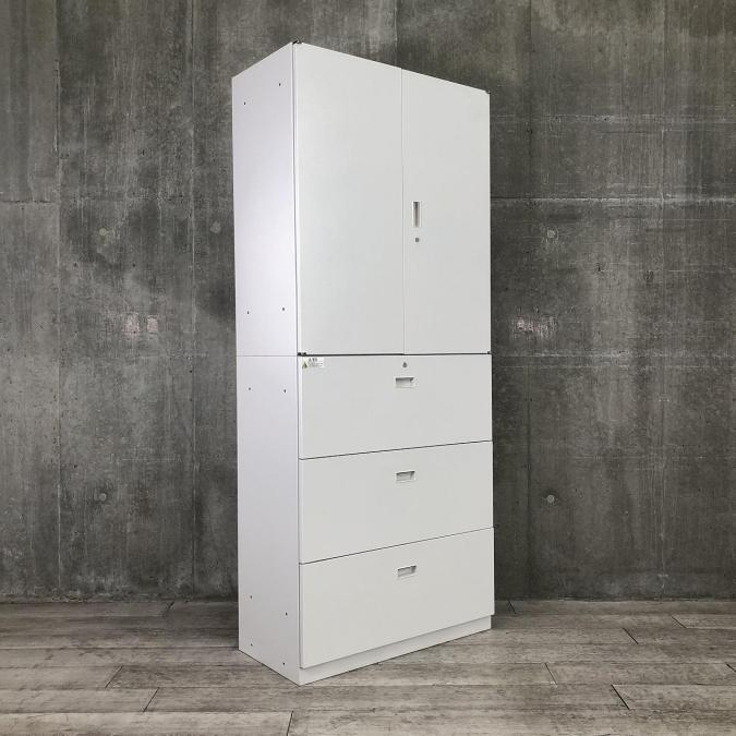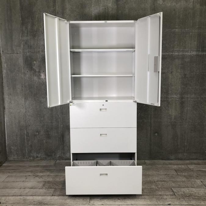 【オフィス書類をスッキリ整理! 】■イトーキ製 上下書庫セット(両開き+3段ラテラル) シンラインシリーズ ホワイト ■高品質で安心のスチールキャビネット!- 川崎店