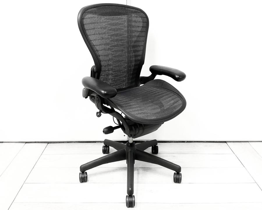 【★状態イマイチのためお安く!】■ハーマンミラー製 アーロンチェア Bサイズ 固定肘 ※キズあり・ランバーサポート無・昇降ガス圧弱めのためお安く!【訳あり特価品】