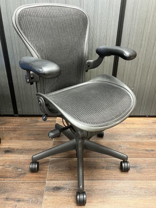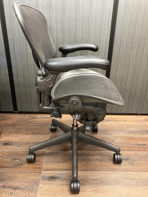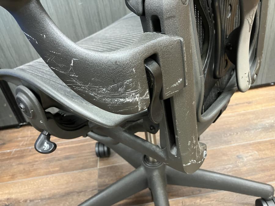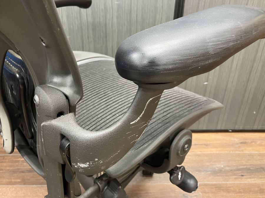 【★肘と脚にスレあり!見た目を気にしなければ使用に問題なし★】ハーマンミラー製 アーロンチェア(スタンダードタイプ) メッシュ 在宅 自宅 ゲーム 海外製 椅子 リラックス 中古家具 中古オフィス 九州最大級《オフィスバスターズ福岡博多店は、福岡を拠点として、日本全国へ中古オフィス用品・オフィス家具を提供しております》
