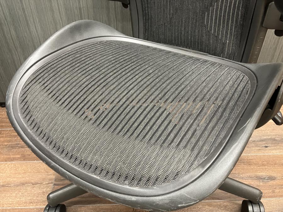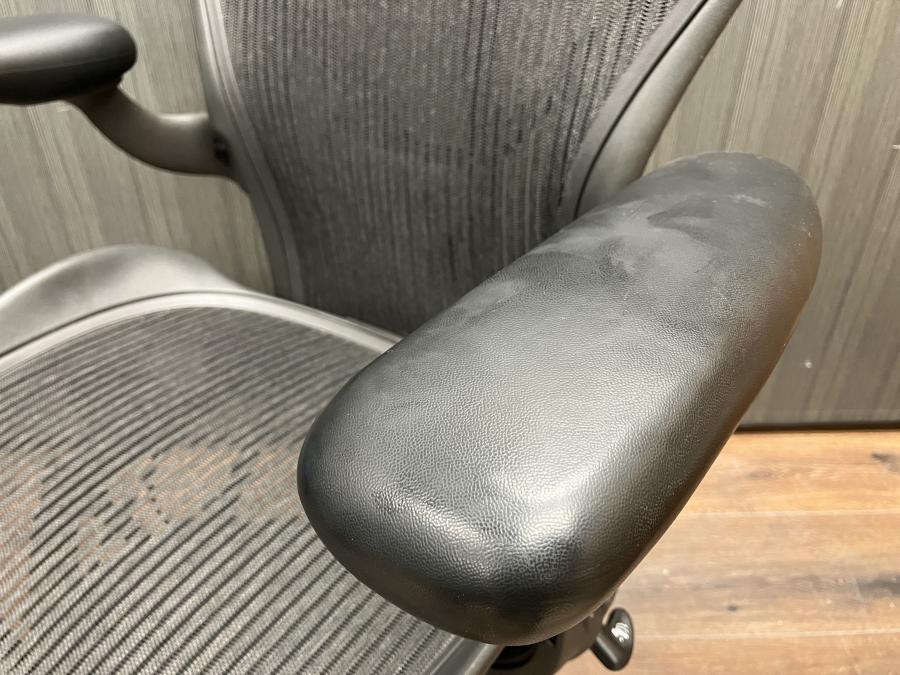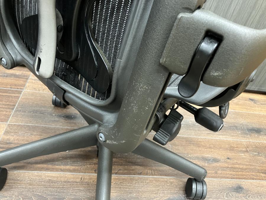 【★肘と脚にスレあり!見た目を気にしなければ使用に問題なし★】ハーマンミラー製 アーロンチェア(スタンダードタイプ) メッシュ 在宅 自宅 ゲーム 海外製 椅子 リラックス 中古家具 中古オフィス 九州最大級《オフィスバスターズ福岡博多店は、福岡を拠点として、日本全国へ中古オフィス用品・オフィス家具を提供しております》