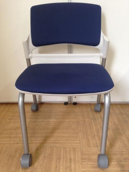【残り2脚の為、お安く!】【キャスター付きで使いやすい!ミーティングに最適!】■ウチダ(UCHIDA)製 MF-180シリーズ スタッキングチェア ミーティングチェア ■キャスター付き ■レイズンブルー×ホワイトシェル