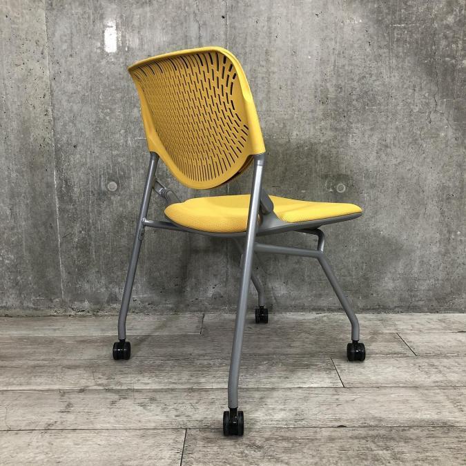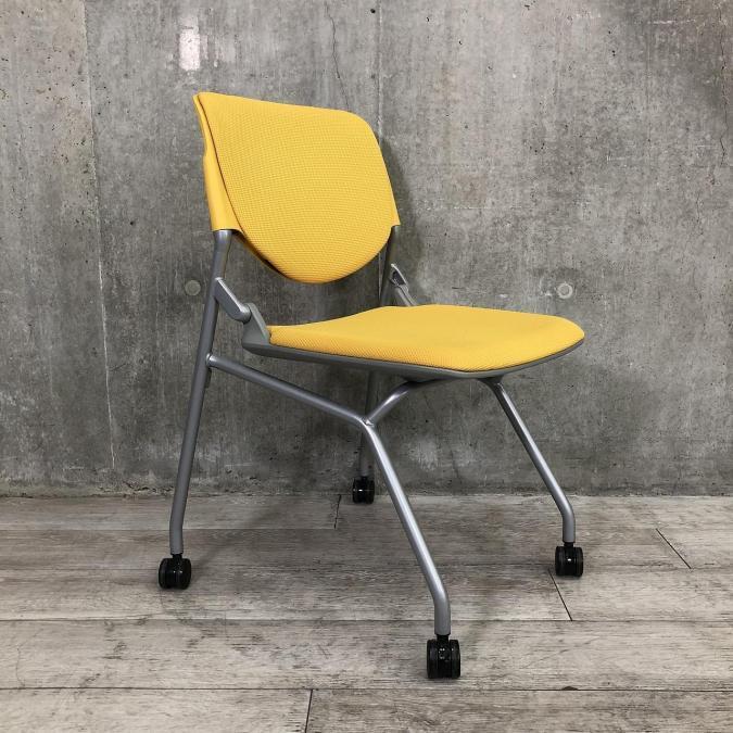 【関東倉庫在庫品】【シンプルなデザインで使いやすいミーティングチェア!】【在庫入替セール品】■オカムラ製 ルナ ネスティングチェア ■イエロー【弊社使用欄:A01021721】【ECBMC】