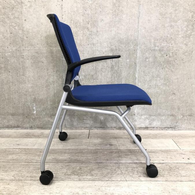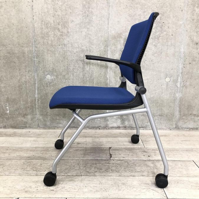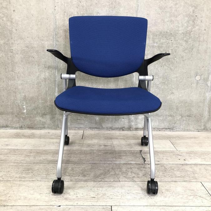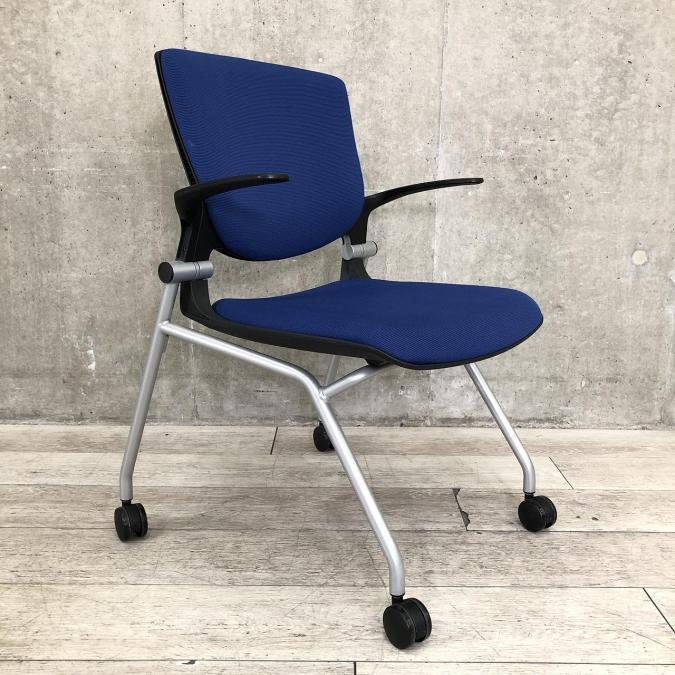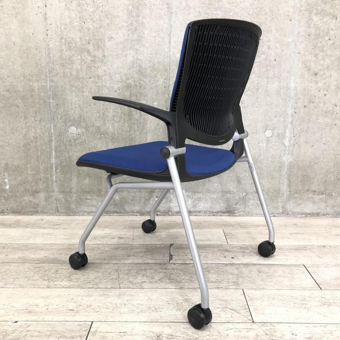 小肘付ネスティングチェア/背面クッション付き/ネイビー/オカムラ製/福岡/天神/博多/中古/安い