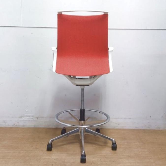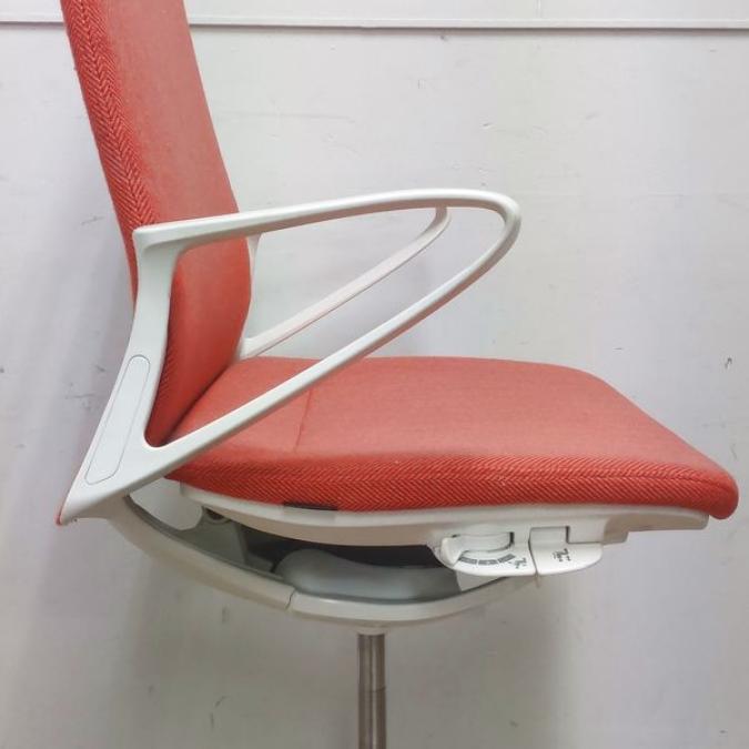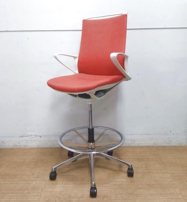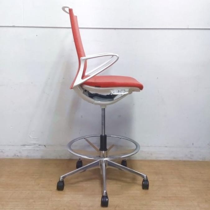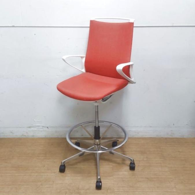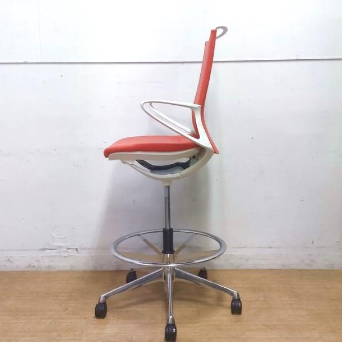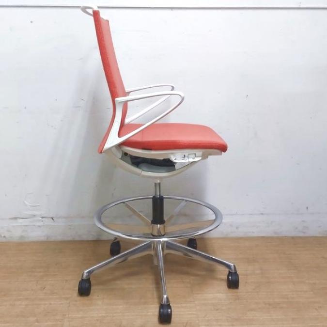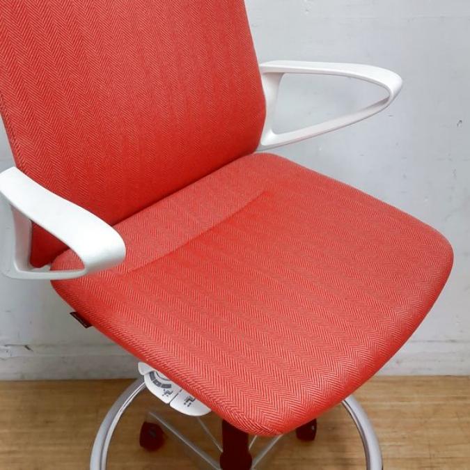 【在庫入替セール】機能とデザインが融合 オカムラ モード ハイチェア ミドルバック デザインアーム ヘリボーン オレンンジレッド- 名古屋千種店