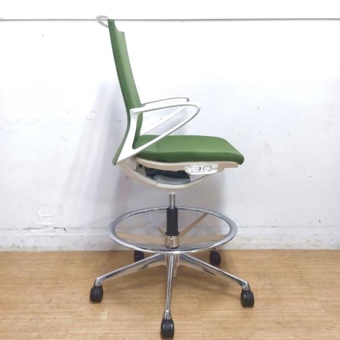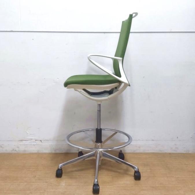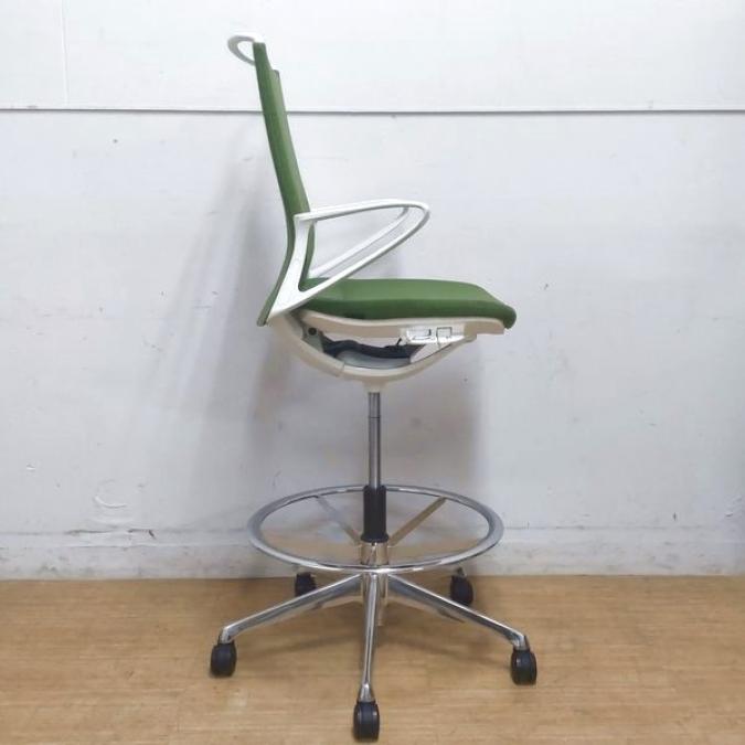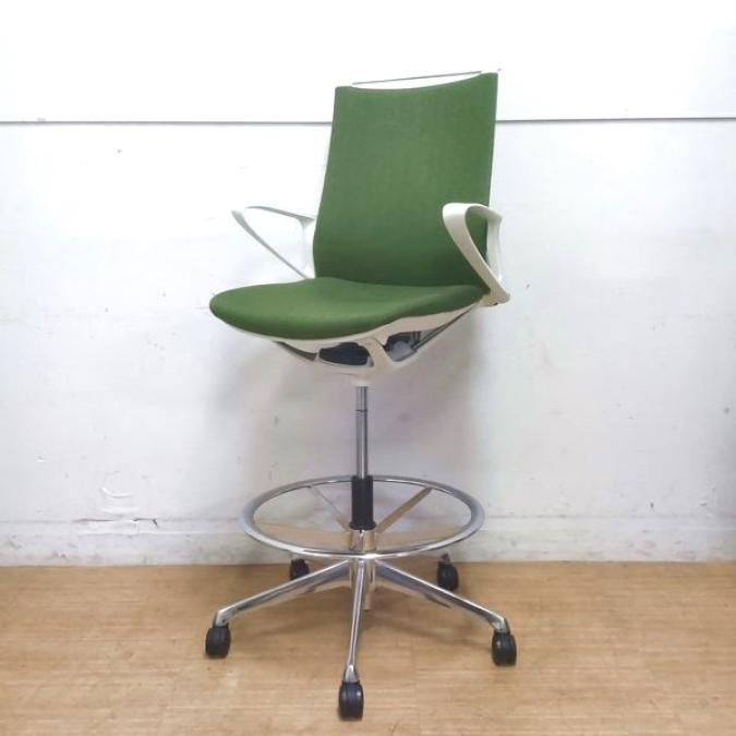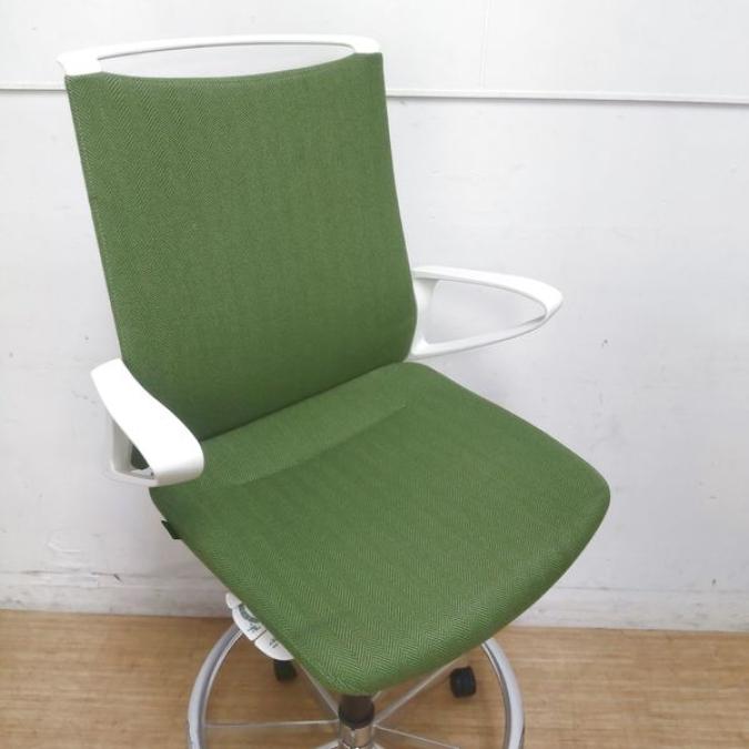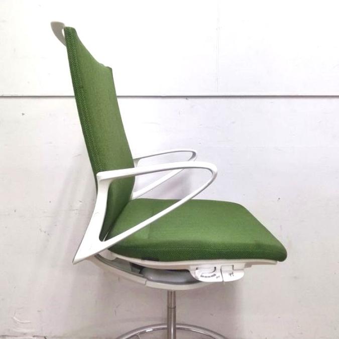 【在庫入替セール】7機能とデザインが融合 オカムラ モード ハイチェア ミドルバック デザインアーム ヘリボーン グリーン- 名古屋千種店