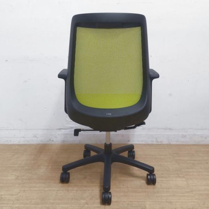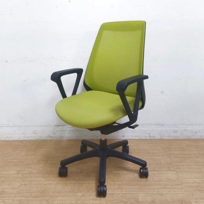 イトーキ ノナ モスグリーン×ブラックの定番カラー 人気のコンパクト設計のメッシュチェア ループ肘- 名古屋千種店