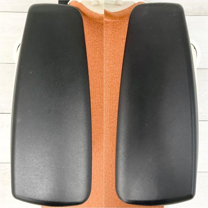 - あり黄ばみ・変色が広い範囲にうっすらある、または濃い黄ばみ・変色が一部ある。(例、座面・背もたれ、脚部等にある。)