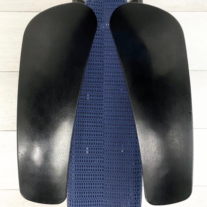 【2脚限定の為、クレジット決済優先】【オフィスの執務室、会議室におすすめ!】■オカムラ(okamura)製 バロン(Baron)チェア 肘付き ハイバック 背面メッシュ ■可動肘 ■ダークブルー × ホワイトシェル【硬めの座面が大人気!国産メッシュチェアの代表格!】