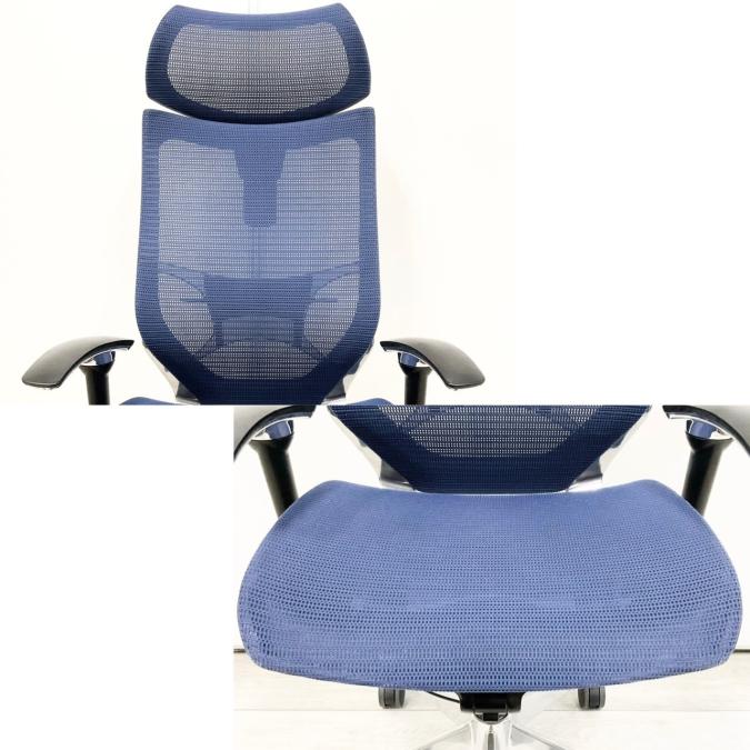 【在庫セール品】【定価約20万円】【人間工学に基づいた快適設計で身体にやさしくフィット!】■オカムラ(okamura)製 バロンチェア 肘付ハイバック 可動肘付 ■メッシュ ■ダークブルー 【ベストなポジションが得られる先進設計!】
