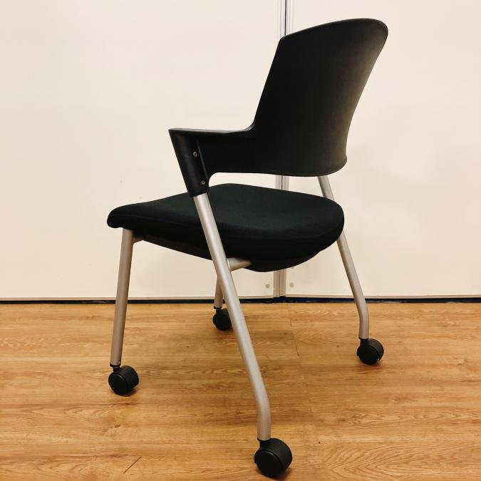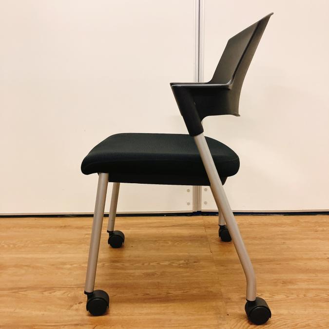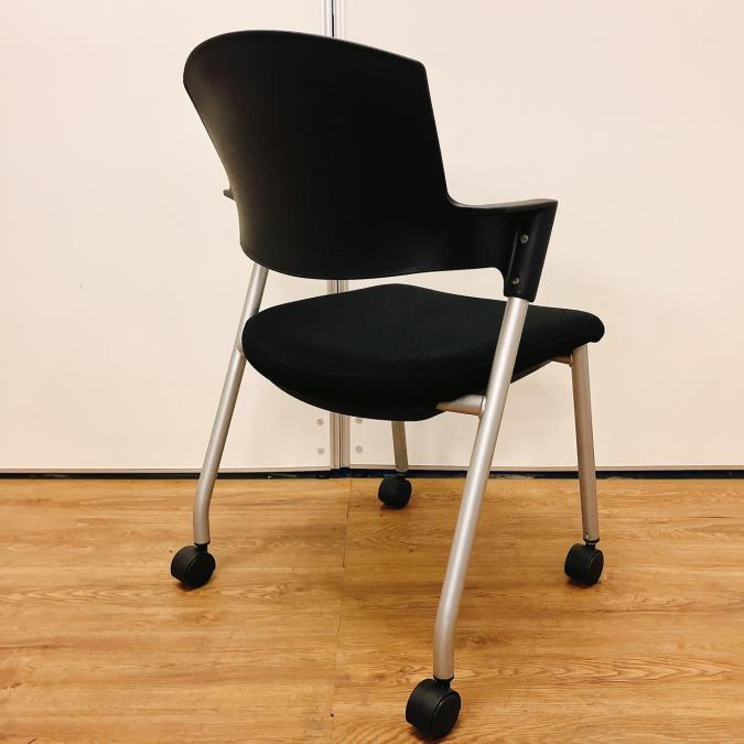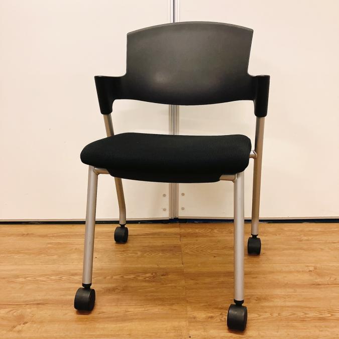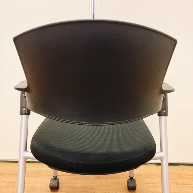 【6/16・8脚入荷予定!】【シンプルスマートなスタッキングチェア!分厚いクッションで長時間でも快適な座り心地!】■コクヨ製 プロッティ スタッキングチェア 肘付ミーティングチェア ■固定肘 ■キャスター付 ■ブラック ■背面樹脂 オフィスバスターズ梅田本店