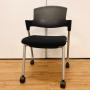 【シンプルスマートなスタッキングチェア!分厚いクッションで長時間でも快適な座り心地!】■コクヨ(KOKUYO)プロッティ(Protty) スタッキングチェア ■ブラック ■固定肘 ■背面樹脂 ■キャスター付