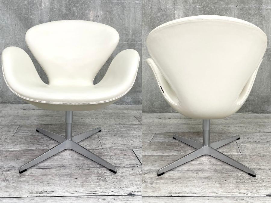 G)Fritz Hansen フリッツハンセン アルネ・ヤコブセン スワンチェア 北欧 本革 オフホワイト- デザイナーズ家具センター
