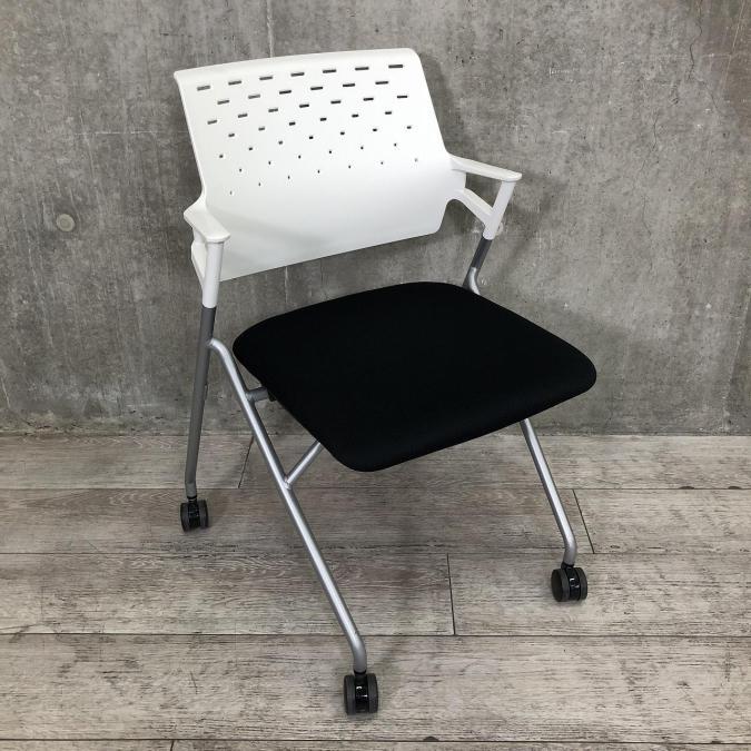 【キャスター付きのミーティングチェア入荷!】■コクヨ(KOKUYO)製 ピエガ ミーティングチェア ネスティング ■キャスター付き ■ブラック座面×ホワイトフレーム【使わない時は重ねて収納可能!】- 足立・葛飾店