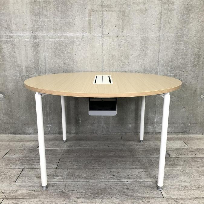 【入替特価品】【ナチュラル天板の丸テーブル】■ITOKI ミーティングテーブル 丸テーブル ■ナチュラル天板×ホワイト脚 ■4本脚タイプ ■幅1200【ミーティング時に便利な配線カバー付き】【G2】A00917324- 春日部・越谷店