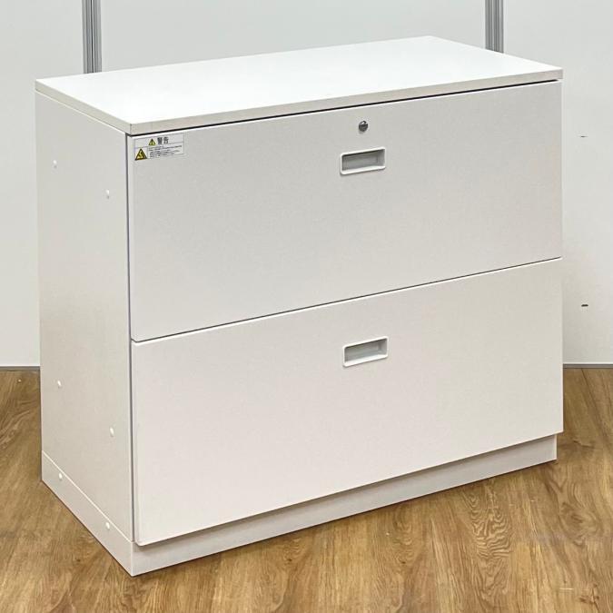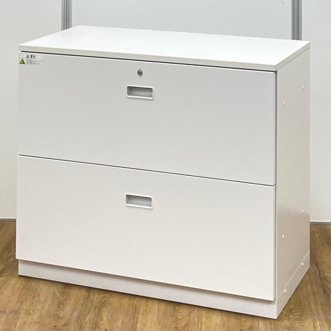 【珍しい2段ラテラルタイプ!】耐久性・機能性を兼ね備えたキャビネット!スペースにジャストフィットする引き出し型収納 ■イトーキ/シンライン/ホワイト シリンダー錠