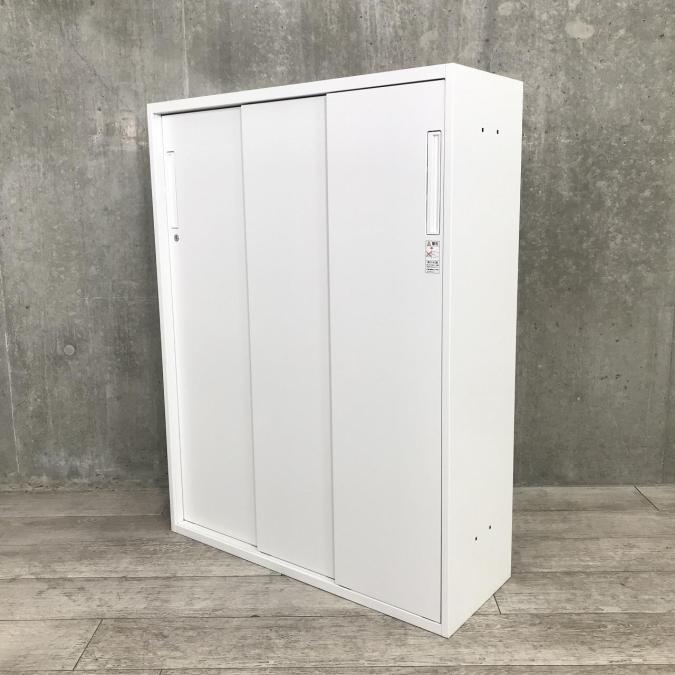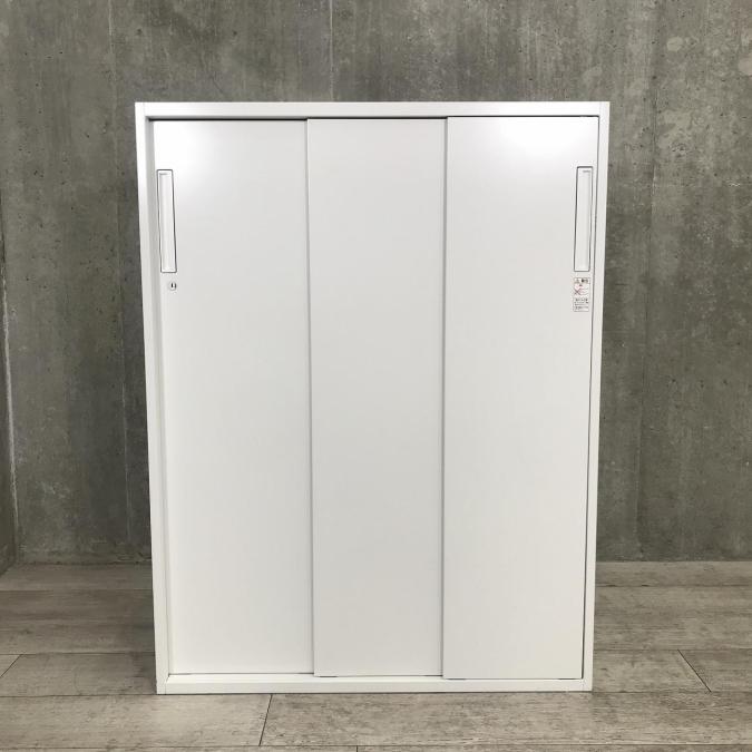 3枚引き戸書庫 コクヨ エディア 鍵付き(シリンダー錠) 天板付き 清潔感のあるホワイトキャビネット 導線を邪魔しないスライド式の扉