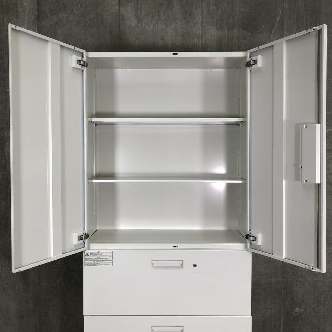 ★【T12】【商品入替のため、残り2台限り】プラス製 L6 ホワイト W900×D450×H2150 両開き+3段ラテラル シリンダー錠 オフィスの書類をスッキリ整理! 両開きと引き出し式の人気の組み合わせ! ハイキャビネット 上下書庫セット!!