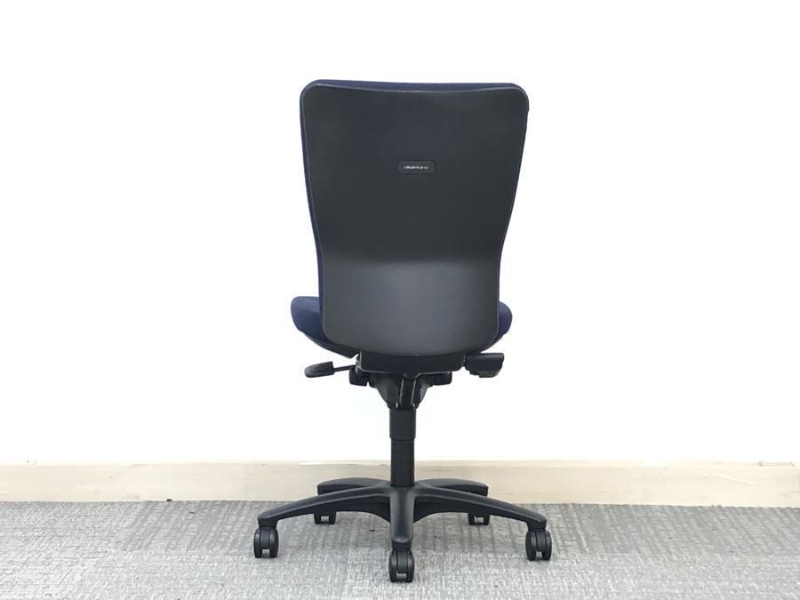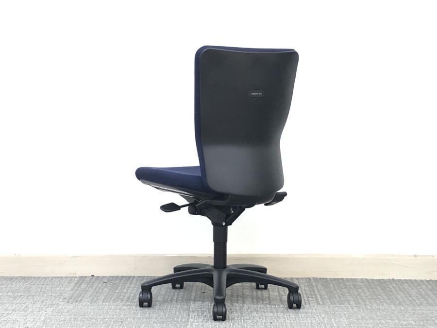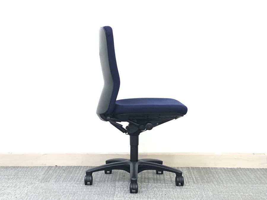 【在庫入替セール】オカムラ カロッツァ 肘無しチェア ゆったり座れるハイバックモデル ダークブルー×ブラックフレーム