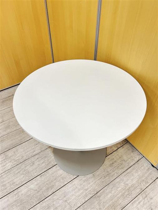 【1台入荷】おしゃれな丸テーブル入荷!中古 カフェテーブル W600 D600 ホワイト ミーティング 会議- 在庫数