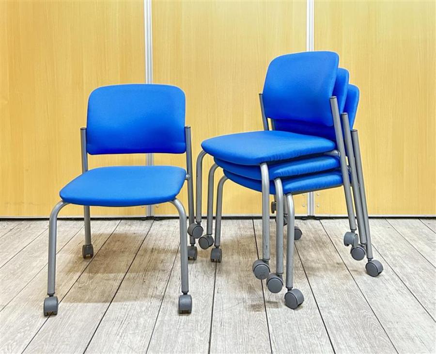 【コクヨ製のスタッキングチェアが入荷致しました!】大人気!ブルーカラー!会議室などに是非!! 中古 収納 キャスター KOKUYO 会議 4脚セット- 神戸・三宮店