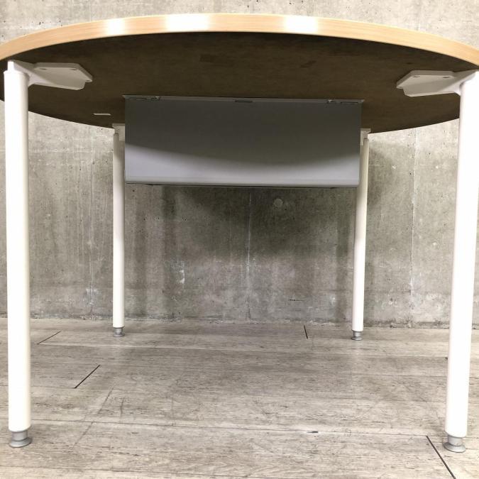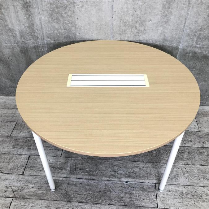 【ナチュラル天板の丸テーブル】■ITOKI ミーティングテーブル 丸テーブル ■ナチュラル天板×ホワイト脚 ■4本脚タイプ ■幅1200【ミーティング時に便利な配線カバー付き】- 東大阪店
