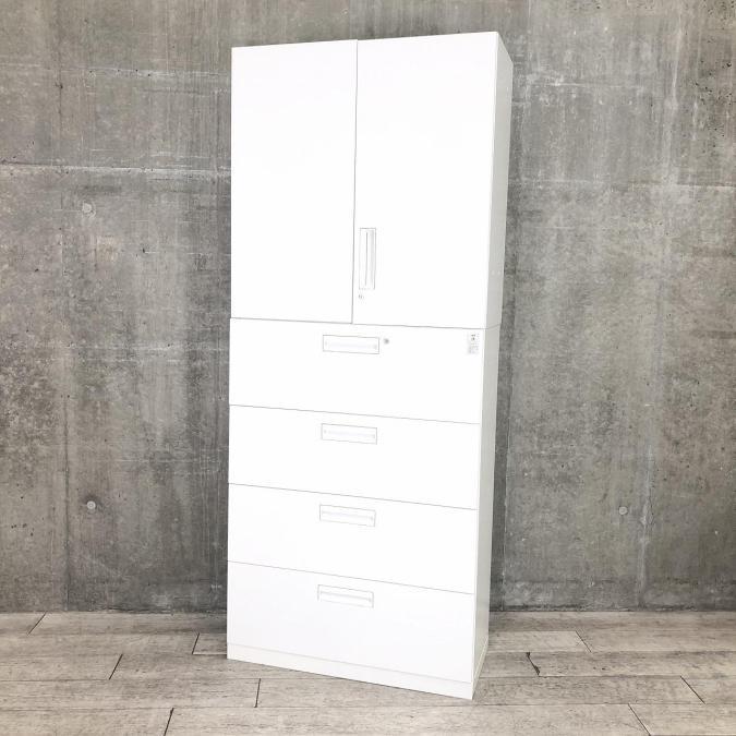 【収納量抜群の書庫セット!観音開き+引き出しタイプの人気の組み合わせ!】■コクヨ(KOKUYO)製 エディアシリーズ(EDIA) 両開き+3段ラテラル 書庫セット ハイキャビネット ■シリンダー錠 ■ホワイト
