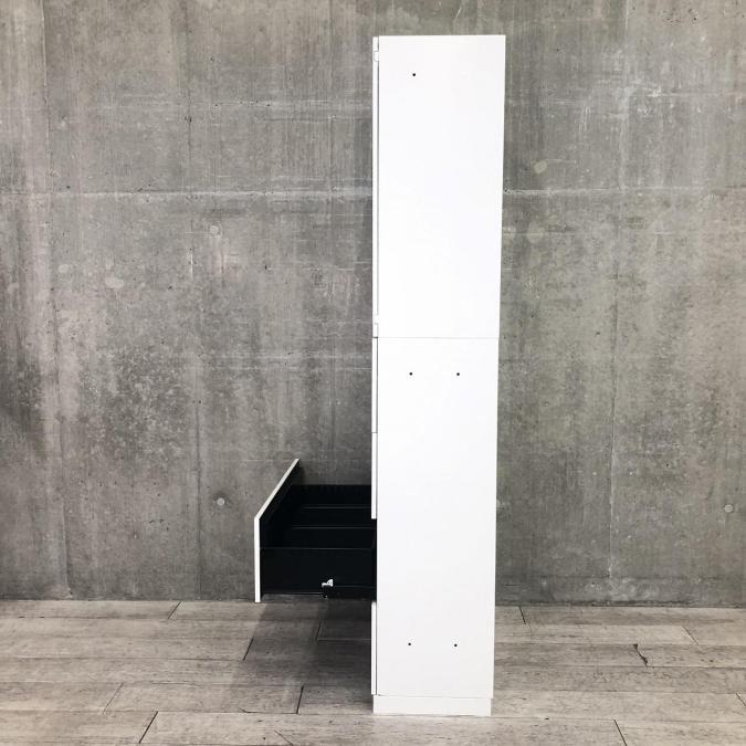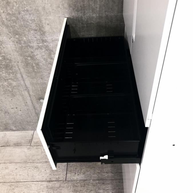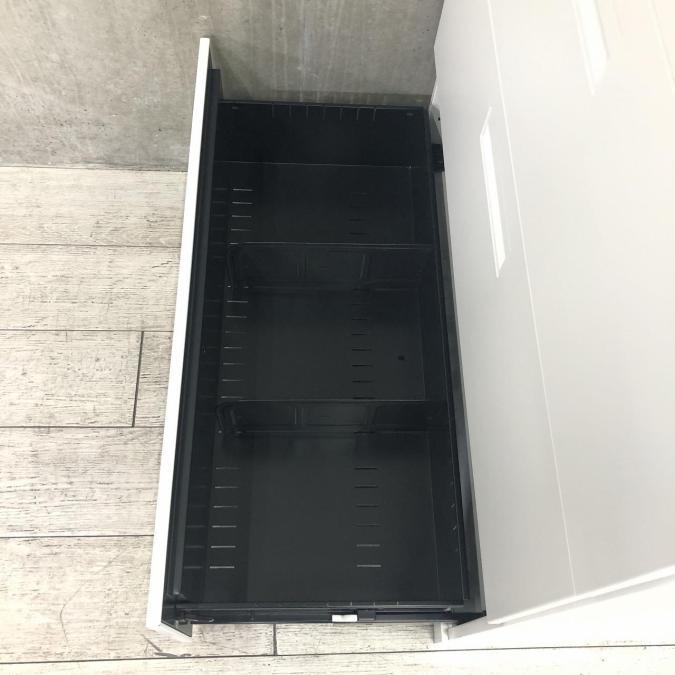 - 両開きタイプは扉が180度開き、通路の邪魔になりません。ラテラルタイプは引出しが限界まで出せ、出し入れ楽々。
