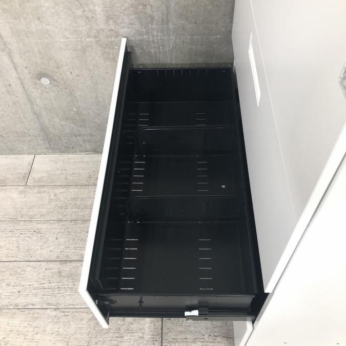 - 一部不具合ありそ引出の開閉不可、施錠不可、棚板無しといったの書庫の本来の効用を果たすための機能以外の一部が使用不可(例、扉、引出の開閉がしづらいなどがある。 )