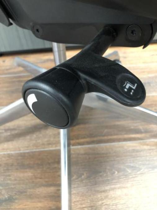 - 座面右下のダイヤル操作で、リクライニングの強弱調整が行えます。これまでのダイヤル式よりも、少ない回転数で、最弱?最強の調整が可能です。