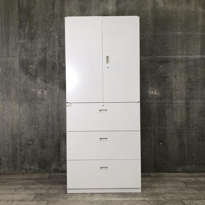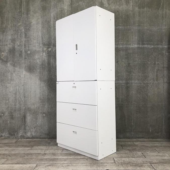 【大容量でスッキリ整理!観音開き+3段ラテラル書庫セットが入荷!】■イトーキ (ITOKI)製 シンライン(THUN LINE) ハイキャビネット (両開き+3段ラテラル) ■ホワイト ■シリンダー鍵